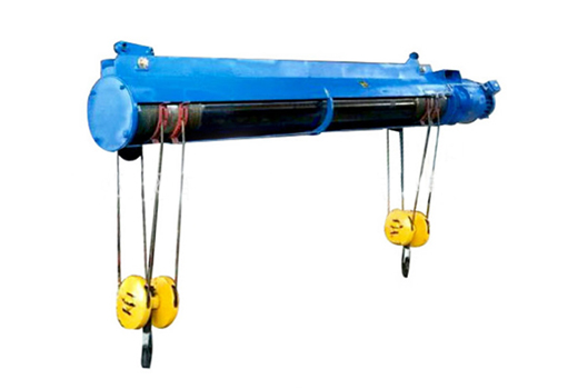 ??????市場上雙鉤雙吊點電動葫蘆所謂雙吊點鋼絲繩電動葫蘆是指有兩個間隔一定距離的吊點,并能同時上升或同時下降的電動葫蘆。現有的雙吊點鋼絲繩電動葫蘆有,在一臺鋼絲繩電動葫蘆卷筒兩端各有-套吊鉤滑輪裝置,這種雙吊點電動葫蘆因兩套吊鉤滑輪裝置均由–個卷筒起升或下降,可以保證兩吊點同時升降。